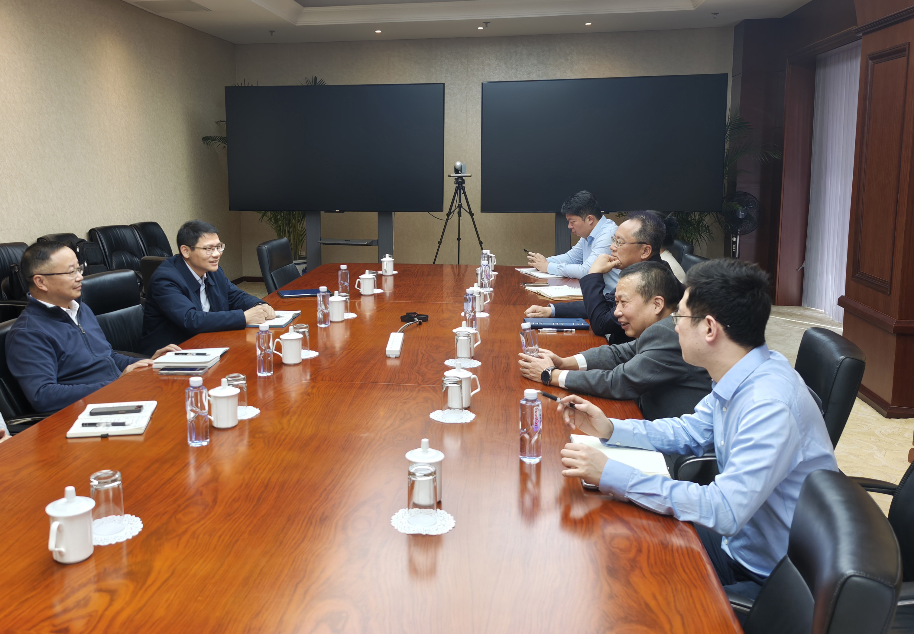 在中国信达,公司总裁助理酒正超携相关部门负责人会见了雷军荣一行。交流过程中,酒正超介绍了中国信达在资本市场领域不良资产投资的战略方向,对上市公司破产重整市场形势进行了剖析,雷军荣简要介绍了公司资本市场业务布局、经营成效等情况。双方就如何结合全国性AMC的体量优势与地方AMC的区域深耕优势、共同探索合作新模式交换了意见。双方表示,未来将进一步密切沟通协作机制,立足各自资源禀赋,以专业化运作和市场化机制携手为行业发展注入新动能。